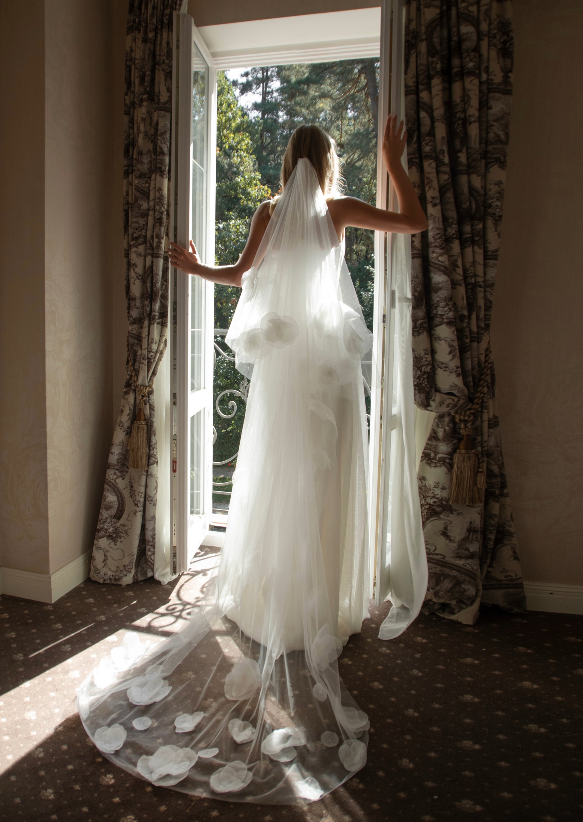 To avoid: Large 3D flowers on the dress, so the veil doesn’t compete with the gown.